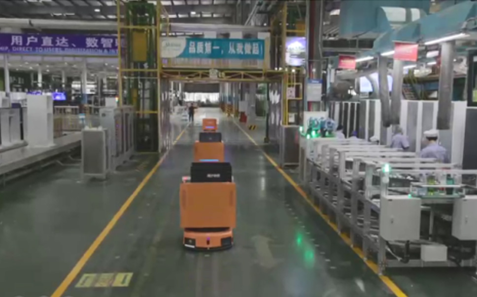 为车载冰箱物流配送打造的智能解决方案,,,,包含产中物流通过潜伏举升AMR搬运至线边,,,,产后成品物流智能仓储,,流程包含产中物流智能齐套入库,,,线边安灯叫料AMR智能配送至线边,,,成品入库、、、、出库,,通过无人堆高车机器人,,,,智能仓储管理替代人工作业管理,,,,实现更高存储、、、更高效率、、更具柔性化的解决方案。。。。